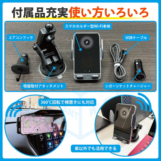 スマホを「置くだけ」で充電+固定! ワイヤレス急速充電搭載のスマホホルダー型のモバイルWi-Fiです!
